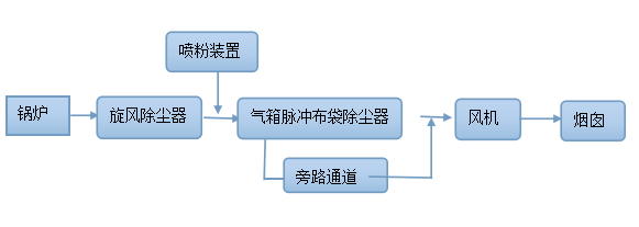 針對(duì)上述鍋爐特點(diǎn),提出如下除塵工藝見圖: