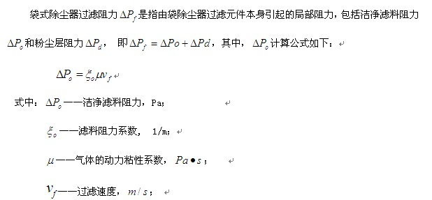 袋式除塵器的運(yùn)行阻力為進(jìn)風(fēng)口和出風(fēng)口處全壓的絕 對(duì)值之差,表示氣體流通過(guò)袋式除塵器所耗的機(jī)械能。一般壓力損失可用壓力計(jì)在袋式除塵器的設(shè)備現(xiàn)場(chǎng)測(cè)出。在實(shí)際工程中,袋式除塵器的運(yùn)行阻力主要由結(jié)構(gòu)阻力和過(guò)濾阻力兩部分組成。
