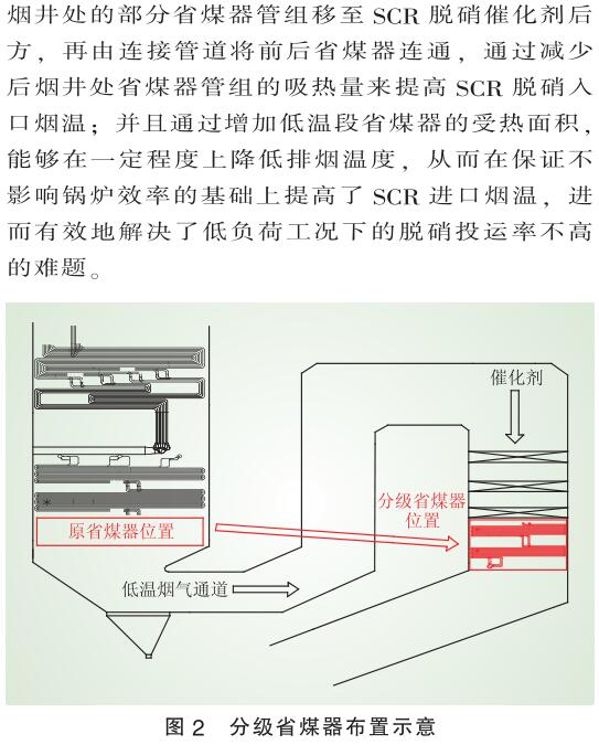 對(duì)通過分級(jí)省煤器改造來提高超 臨界鍋爐低負(fù)荷工況下脫硝系統(tǒng)投運(yùn)率的改造案例進(jìn)行了研究。通過持續(xù)2個(gè)月的運(yùn)行監(jiān)控表明,運(yùn)用分級(jí)省煤器改造來保證低負(fù)荷工況下NOx的持續(xù)超低排放、 脫硝系統(tǒng)的穩(wěn)定投運(yùn)方案切實(shí)可行,且鍋爐排煙溫度進(jìn)一步降低,為目前國內(nèi)眾多采用SCR工藝進(jìn)行煙氣脫硝的電廠升級(jí)改造提供了可靠的參考依據(jù)。