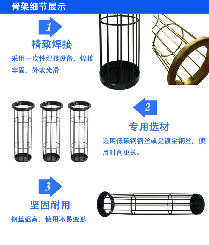 梯形除塵骨架又叫梯形框架,梯形骨架,梯形除塵骨架,梯形袋籠,梯形籠骨采用扁形結(jié)構(gòu),籠骨的縱筋和反撐環(huán)分布均勻,并有足夠的強(qiáng)度。梯形骨架采用扁形結(jié)構(gòu),梯形骨架的縱筋和反撐環(huán)分布均勻,并有足夠的強(qiáng)度,防止損壞和變形,為了保證鋼絲的強(qiáng)度和提高外觀質(zhì)量,我們采用φ6.5元鋼拉制(拉成φ3mm),而后在對焊胎上成體組裝時,修磨達(dá)到技術(shù)要求。梯形除塵骨架采用有機(jī)硅噴涂或鍍鋅、噴漆等技術(shù),鍍層牢固,耐腐,避免了除塵器工作一段時間后籠骨表面銹蝕與濾袋黏結(jié),保證了換袋順利,同時減少了換袋過程中對除塵布袋的損壞。